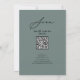 Elegant Script Sage Grönt Minimalist QR-kod - repetitionskort för middagsinbjudan. Fira din speciella dag med den här eleganten och ett vackert bröllopskort för att passa ditt speciella tillfälle. Alla texterna är i förväg ordnade så att du enkelt och snabbt kan anpassa dig med dina egna detaljer. Om du behöver ytterligare anpassning eller matchning av artiklar, var snäll och tala om för oss - vi skulle hjälpa kärlek.