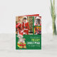 Vi önskar er ett mycket God jul personlig namn och fyra av era egna helgdag i rött och mörk grönt. Lägg till tre foton på utsidan av det här kortet och ett på insidan. Anpassa med din egen namn. Koala har en candy cane och en julhatt på sitta på en presentbox - vattenfärgsbild och kortdesign av Sarah Trett för www.mylittleeden.com