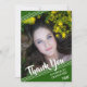 Handskrivet penselskript med titeln TACK och studenten accentuerar student namn och fotot mot en redigerbar grönt bakgrund. Baksidan har stjärnorna mönster och ställe för att förskriva ett tackmeddelande eller ta bort exempeltexten för att lämna tomt för personliga handskrivna meddelanden. PHOTO TIP: För snabbaste/bästa resultat, på framsidan, väljer du ett foto med subjekt i mitten i en rektangel i vågrät för att passa den diagonala placeringen. och/eller förmonterar det till en bred rektangulär form FÖRE uppladdning och fyller i fotoutrymmet perfekt. Kontakta designern via Zazzle-Chatta eller makeitaboutyoustore@gmail.com om du vill att designen ska ändras, på en annan produkt eller om du vill samordna produkter.