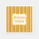 Välkomstvänner är budskapet på dessa pappra servetter som finns i flera storlekar, med rand av guld, gult, grönt och orange. Det är enkelt att anpassa dem med ditt eget meddelande. En roligt och ett fantasifullt tillskott för underhållning i ditt bostadsområde utomhus, i Tatio, bassäng eller stranden. Samordnar med stranddukar, tote bags, flinflip flops, utomhuskuddar och mer för att göra detta till en sommar av lycklig minnen! Texten kan vara personlig med ditt eget namn eller meddelande.