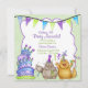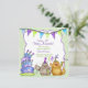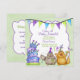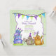 Cute, lustig neutralt födelsedagsfest inbjudan, har ett par katter i party-hattar med dryck- och bullertillverkare. Roligt krökt födelsedagskalas med ljus och buntbanderoll. Huvuddelen av färg är grönt och lila. Text på framsidan och baksidan av det här roligten är redo för dig att anpassa med party-informationen. Kortet har matchande design.