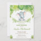 Chic elefantbaby showerinbjudan som presenterar den förtjusande elefanten för hand plockadevattenfärgbebis och tropisk lövverk för vattenfärg. Personifiera den med ditt baby showerparty specificerar lätt och snabbt, enkelt pressen skräddarsy som den knäppas vidare för att organisera om och formatera stilen och placeringen av texten. Kan personifieras för babystänk, baby showerTeaparty, baby showerkickTea, denEd baby shower, Etc.