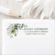 Modern Elegant Watercolor Botanical Grey Return-adressetikett innehåller eucalyptus löv, grönt botaniskt löv, dammiga blå löv och andra vackra botaniska grejer.