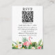 Modern Tropical Blommigt Greenery Bröllop OSA Card med din QR-kod omfattar rosa hibiscus-blommor, vita blommor, gula blommor, handflatan-löv och botaniskt grönt. Rosa Flamingo. Gröntens bakgrund.