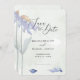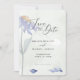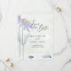 Temapartyets moderna bröllop spara datum-design har vattenfärgsblå daisy och modern manustypografi parad med traditionell lila. Utformningen är inställd på att matcha vattenfärgrutor för rustik grönt och accentueras med motsvarande daisy. #SaveTheDate #Daisy #ModernWedding