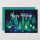 Grönt för vattenfärgsfärgning av ljus vid julets L Julkort