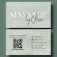 Ett affärskort för grönt av lugnande vattenfärger med subtila accenter från guld, designat för ett lugnande och professionell utseende. Framsidan har typografi av eleganten, medan baksidan innehåller en skannerbar QR-kod för omedelbar bokning eller klientanslutningar. Perfekt för massageterapeuter, spaägare och professioneller i hälsa som vill ha ett modernt lyxarum med ett naturligt serene stil.