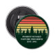 Coola solnedgång flaska-öppnare i vacker grönt för ett naturreträtt- eller campingmarksföretag. Anpassad design har en vacker vintage över en skog av söt träd ovanför personligen för att få en familjemester.