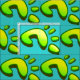 En coola som illustrerar ett stort fotavtryck i klarfärgad lutningsgrön kalk med en mörk-skugga på en sansad, summisk, lukrativ turkobakgrund.