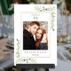 Denna eleganta gröna eukalyptusblad bord nummer har ömtåliga akvarell blad med ditt speciella foto, namn och datum ramade av en guldbård. Designad av Thisisnotme©