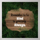 Utformningen har en träskylt med texten "Kom ihåg att vara snäll mot dig själv. Alltid." på en grönt löv handflatan bakgrund. Texten är helt och hållet anpassade.