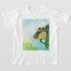 Grönt Frog njuter i dammen, täckt med lila dynor och fånga solstrålning. Bok Illustration. För djur och groda älskare.