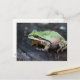 En grönt groda med svart rand är sitta på en mörk, träd i blöt.