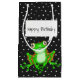 Cute grönt grog på svart och vit polka punkt mönster med tal bubbla i alla åldrar. Text kan redigeras.