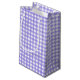 Cute grönt grog på lila och vit gingham mönster med tal bubbla i alla åldrar. Text kan redigeras.