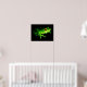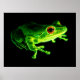 En fraaktaliserad grönt groda med orange öga mot svart bakgrund.
