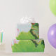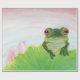 Grönt Frog Relaxing på säkerheten hos lockplattan i dammen. Lily dynor är ett viktigt gömmande ställe för grodor. Bok Illustration från ett barns bok: "LOOK, A FROG!" (skriven och illustrerad av Julia Doria) Perfekt gåva till groda och älskare. Groda i dammdesign. Groda i teckning.