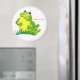 En stor runda magnet med en söt grönt groda som går, "gribbet, gribbet ...", från en vattenfärgsillustration av Judy Adamson. Den här designen passar även nyckelkedjor, knappar och klistermärken.