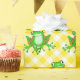 Cute grönt grodor på gult och vit gingham-bakgrund.