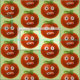 En fin utformning av tomattyget med en mönster av en stor ögondriven tecknad tomater. Dessa tecknad tomater kommer att tilltala en vegetarian, en vegan och alla som har kärlek tomater.
