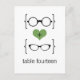 Quirky och chic Geeky Glasses Bröllop Bordsnummer Postcard med en grönt med två par geeky-glasögon, ett manligt par och ett giftigt par som representerar stam och brud. Det här sofistikerade bord-kortet är perfekt för ditt nervösa bröllop! Enkel att anpassa, lägg bara till den personlig du väljer. Klicka på knappen "Anpassa" för att hitta ytterligare anpassningsalternativ.