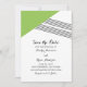 Modern och trendig Geometric Rand Spara datum meddelande med en grönt triangel och tunt strimlad accent. Den här enkla men elegant inbjudan är konfigurerad för att enkelt kunna anpassas till informationen från bröllop. Hitta fler anpassningsalternativ genom att klicka på Anpassa.