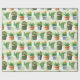 Bostadsväxter på grönt gingham-bakgrund, Aloe vera, Prickly Pear cactus, Golden Barrel cactus och Aeonium.
