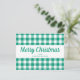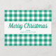 Personlig Grönt Gingham Checkar God jul Script Postcard.