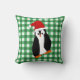 Grönt Gingham jul Penguin och Hälsning Kudde