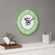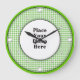 Grönt Gingham Ram runda foto ram bakom timmärkena, Ställe ditt foto här anpassningsbarnas väggklocka, ditt foto visas bakom det runda fotot ram för ett verkligt professionell - vita guld punkter för timmärkningar - 12,3,6 och 9 som är större punkter, i ett diamantformat mönster ser underbart ut på runda eller fyrkantiga klockor