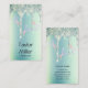 Modern och snyggt hårstilist-affärskort med mint grönt faux glitter, holografisk sax och elegant calligraphy font.