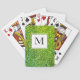 Det här är en modern uppsättning eleganter av Grönt GLITTER MONOGRAM-spelkort. I designen visas en faux glitter-bakgrund med gröntar, limmer och prickar, med en serif-inledande inuti en vanlig vit låda. Den här kortuppsättningen med monogrammet kommer säkert att lägga till en gnistra till fritiden, oavsett om du spelar på en väns bröllop, en privat familj party, en offentlig sammankomst eller en girig natt in.