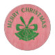 Modern och glam julserveringsbricka har grönt glitter helgdag klockor på rosans bakgrund. anpassadet God jul.