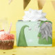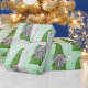 Cute gnome i grönt kostym mot grönt och vitt snöflingor