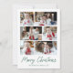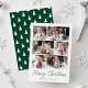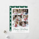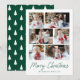 Modern helgdag-kort med 6 av dina foton ordnade i en samlingslayout. "God jul" visas i ett handskript för grönt med din familj namn och året som visas nedan. Multifotokortet återgår till visning en grönt och vitt Julgran mönster.