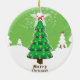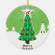 Skogskarusellerna i träd, det grattis kreativets snöflingor i gren, vackert dekorativt plan i gräs, den vita stjärnan i snö färg, dekorerad festive i tecknad, konst julafton lycklig i grönt, prydnadsdecember ny helgdag , årstidsillustration vinter , dekoration firande .