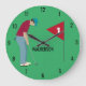 Grönt Golfer Pshing Boll Stor Klocka