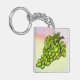 En illustration av en abstrakt som visar utsökta druvor av grönt på ena sidan och en djärv ung bacchus-pojke som rider en kronande löpeld medan han håller en gåva med vin på andra sidan av nyckelkedjan, framför bakgrunden till en färgad av pastellerna. Denna bild är - förutom Bacchus' trasa - helt hand plockade med bläck och färgad med pennor, skannade och förfinade av datorn.