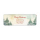 Den här vattenfärgsbilden för rustik vintage har grönt träd i en snöbunden skogsscen. Mycket fridfullt och vackert. Alla röda texter på dessa returetiketter kan redigeras, inklusive "God jul". Se till att byta exempel på namn och adress.