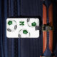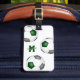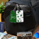Det här fotbolls-temat-bagagetaggen är helt enkelt designat med tre slumpmässigt arrangerade grönt-, grått- och vita fotbollar - personliggör med spelare namn och monogram på framsidan, adress på baksidan - av katz_d_zynes