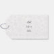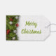 Märkrn för julklappar har grönt gräs träd grenar och prydnadsföremål med God jul i matchande grönt färg. Ljust grått och vit snöflinga mönster i bakgrunden på båda sidor. Anpassade text i söt svart handskriftsteckensnitt på baksidan.