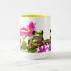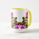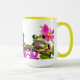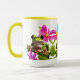 Ai-konst som skildrar söta grönt grodor eller sitta på en gren av rosa blommor.