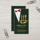 Täckningen har en grönt grunge tuxedo kostym med en serveringsplatta i guld med guld cutlery. Under designen finns din prestigefyllda namn, jobbtitel och kontaktuppgifter nära kortets bas.