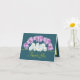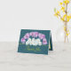 Vackra trädgårdar med rosa och lila krokblommor och vit ros mot bakgrund av grönten färg i akvariet. Gulten färg hälsning användor ett attraktivt typsnitt för skript. Blommorna täcker framsidan av detta kort som kan användas som ett tackkort, ett födelsedagskort eller något annat kort som du väljer. Anpassa den med din text och/eller bilder för att göra den till en sorts!