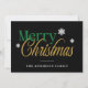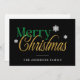 Skicka varmt helgdag med det här julkortet i elegant med en slimmad svart bakgrund, fet "Merry" i festlig grönt och "jul" i skript i guld. En modern men tidlös utformning, perfekt för familjer som vill glädje och sofistikering den här julhelgen. Anpassa till din familj namn för en speciell kontakt som vänner och nära kommer att vårda.