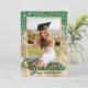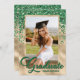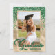 Elegant grönt- och guld-fotoinbjudan med studentfest med ett modernt skript och konfirmi.