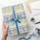 Tappa dina presenter med den här festliga designen som innehåller grönaktiga prydnadsämnen från guld som är spridda runt en bakgrund med ett modernt snögigt mönster.