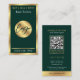 Elegant affärskort i grönt och guld med plats för din skannbara QR-kod och logotyp, perfekt för gods agent, notarius publicus, advokater eller andra professioneller. Den här lyxeriga affärskortet har funktioner för faux guld gräns, gröntens bakgrund, utrymme för en QR-kod i guld ram med dina kontaktuppgifter under. Du kan till och med redigera bakgrunden till valfri färg till kostym under ditt varumärke!