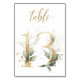 Vackert bordskort med botanisk motiv - en akvarellillustration av gröna och gyllene blad. Bord 13. Vänligen kontrollera tillgängliga nummer
