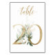 Vackert bordskort med botanisk motiv - en akvarellillustration av gröna och gyllene blad. Bord 20. Vänligen, kontrollera alla tillgängliga nummer
